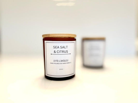 Sea Salt and Citrus Scented Candle 10 oz candles| Essential oils infused| All Natural Soy Wax Candles| Long-lasting aroma| Handmade and cozy