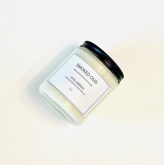 Smoked Oud Scented candles 8oz| Frankincense and woody Essential oils infused| All Natural Soy Wax Candles| Long-lasting aromas| Handmade